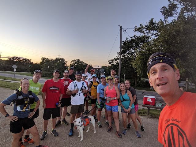 Second lottery win was for the super group of guys that joined me, (above l-r, Maahi Yarlagadda, Dan Kuhlman, Miguel Arellano, Bill Loats, Pete Benson, me, and Todd Chandler). Since this trip was planned over several years, you can imagine the cast of characters changed over that time due to injuries, sickness, second thoughts, real life getting in the way, not being able to train properly, etc. The six guys that went with me were all rock solid, great guys, awesome friends. I know them from races, group runs, hanging out after runs, or just sharing info on FaceBook/Strava/Garmin Connect. I have no doubt that if push came to shove, I was the weakest link in the chain. As it actually went, I was was bringing up the rear of the train at the finish of both days. In the two days of running there wasn't even so much as a blister in our group, everyone was well trained and experienced enough to deal with things like hydration/calories/hot spots before it became a problem. It was a true dream team, plus me.